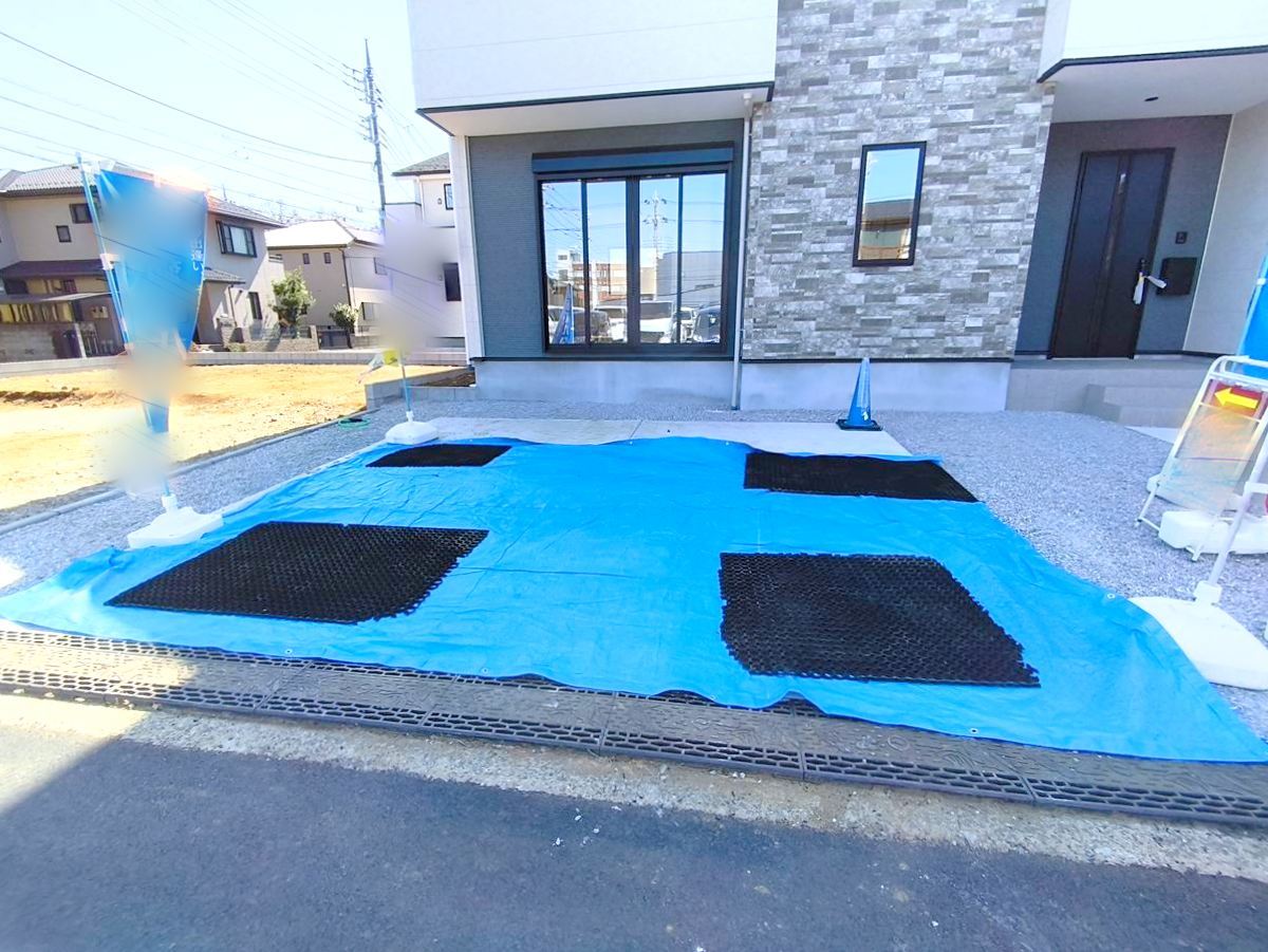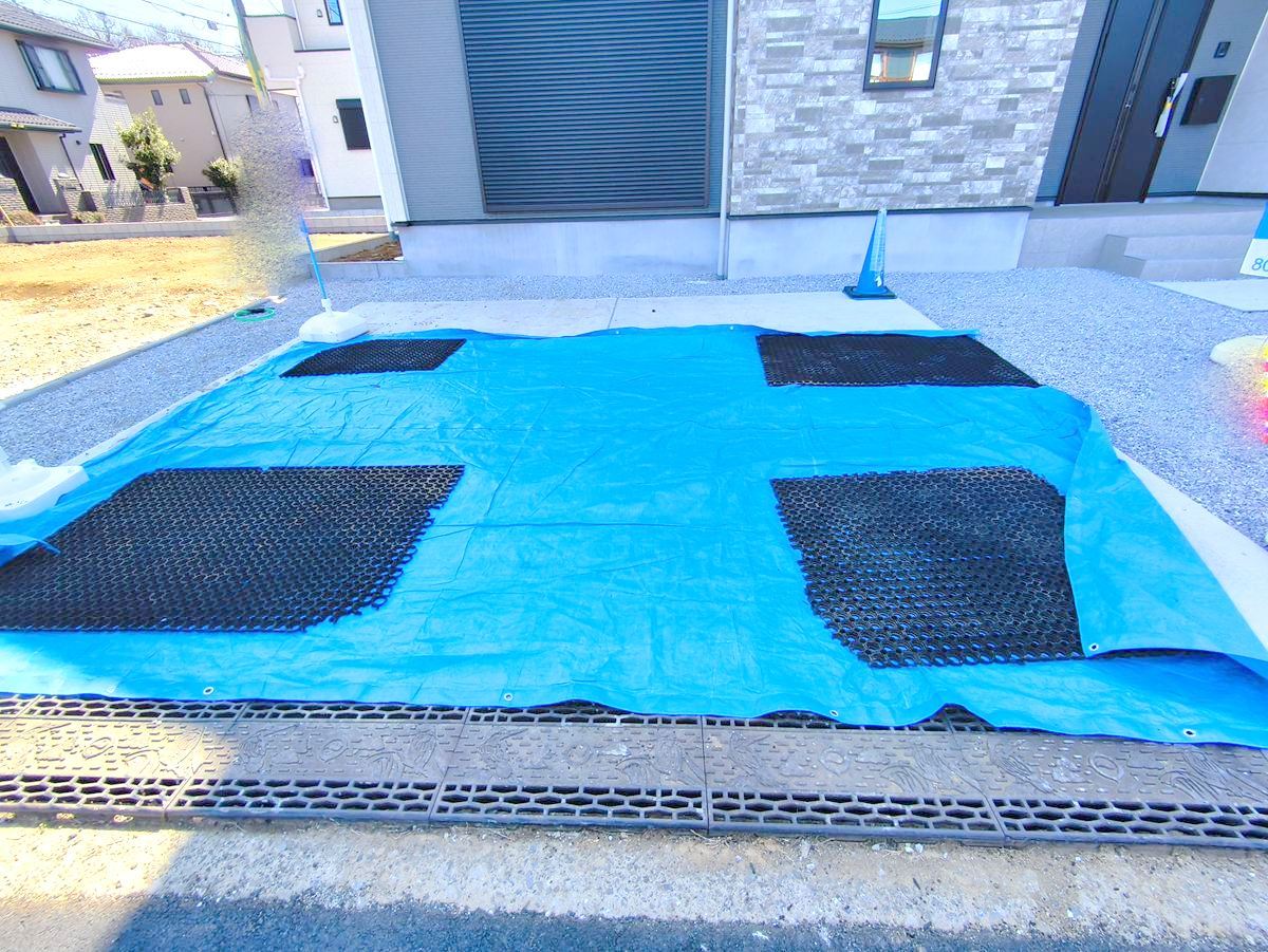カースペースはコンクリート仕上げ。雨の日も足元は気になりません!■日野市万願寺6 新築一戸建て■
