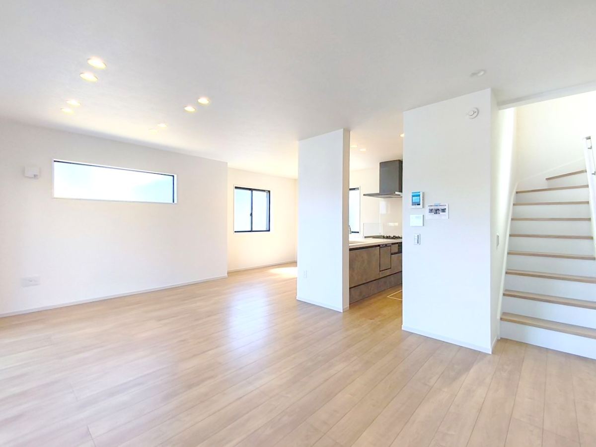 リビングを中心とした家族のコミュニケーションを作り出すリビング階段。お子様の「ただいま」の声を、顔を会わせて聞くことができます。大きな窓を配置し明るく開放感ある設計にしました。■日野市万願寺6 新築一戸建て■