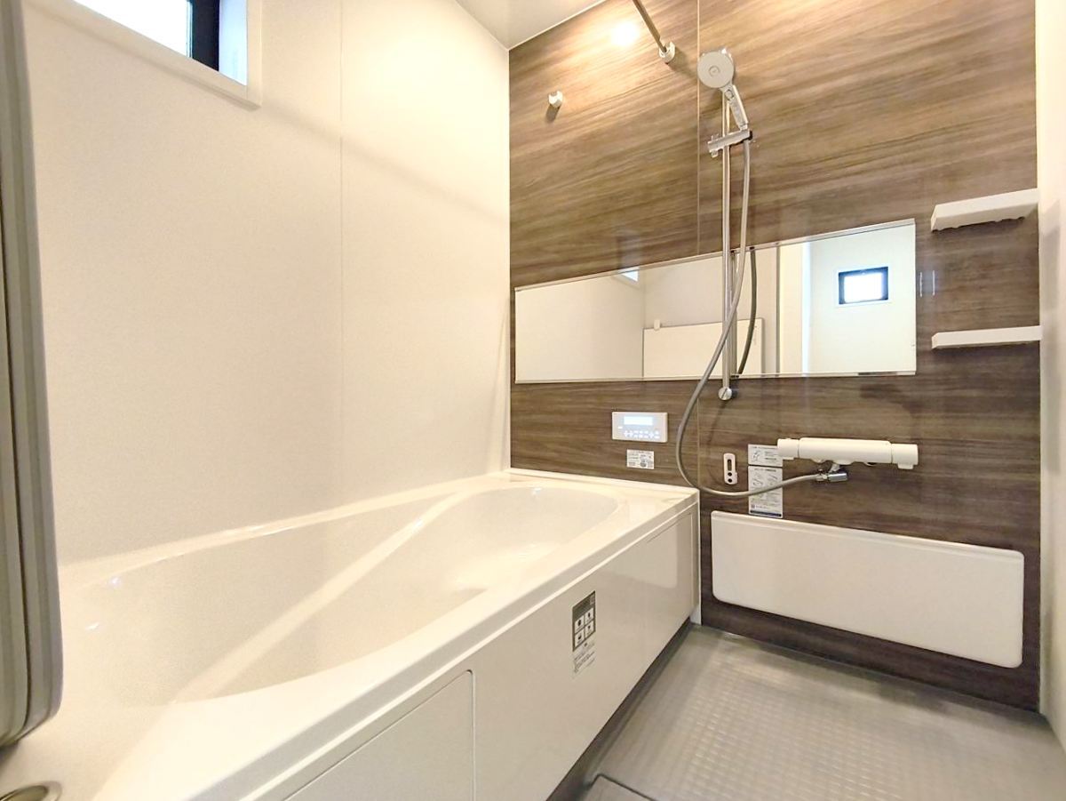 一日の疲れを癒すための心地よいバスタイムを演出する浴室はゆとりあるサイズを採用。保温機能付き!■日野市万願寺6 新築一戸建て■