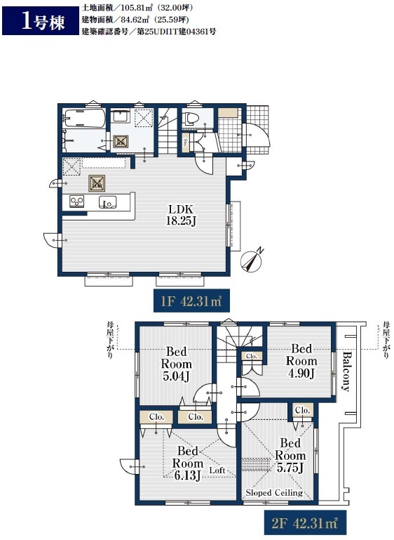 | バルコニー | 東向き | 建築確認番号 | 第25UDI1T建04362号 |