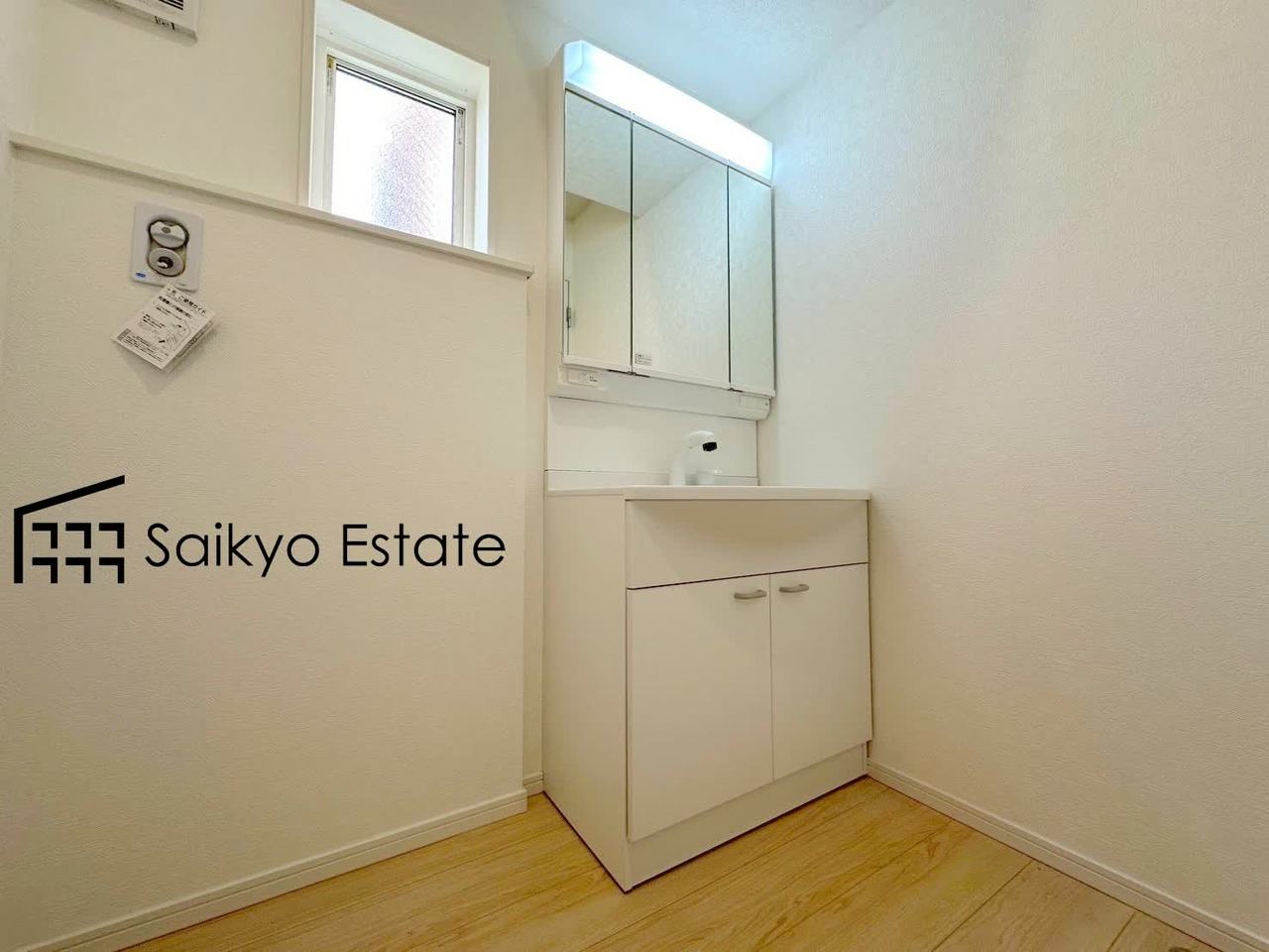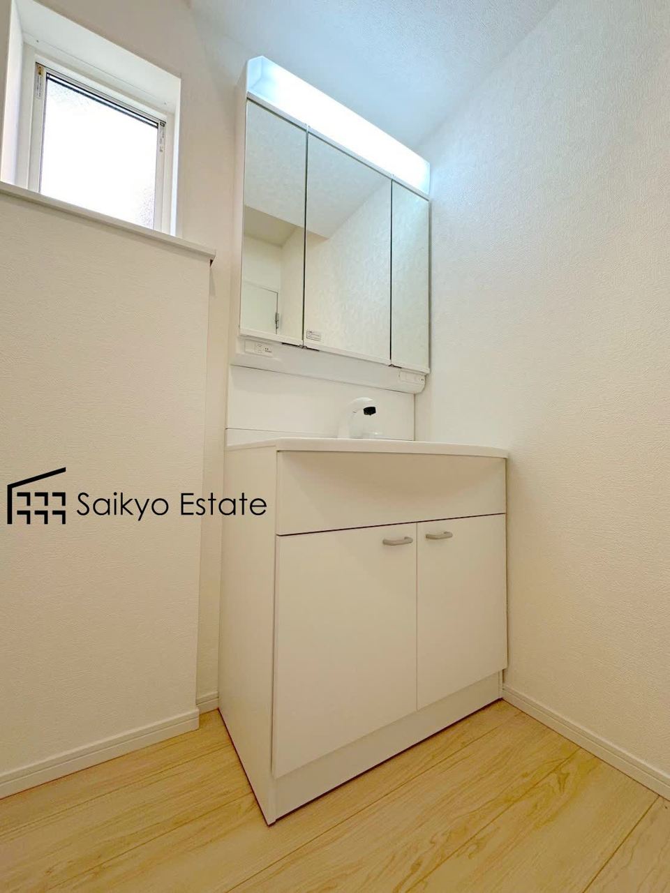 三面鏡付きの洗面化粧台を完備。収納スペースも十分ございますので、ドライヤーなどすっきりと片付きます♪