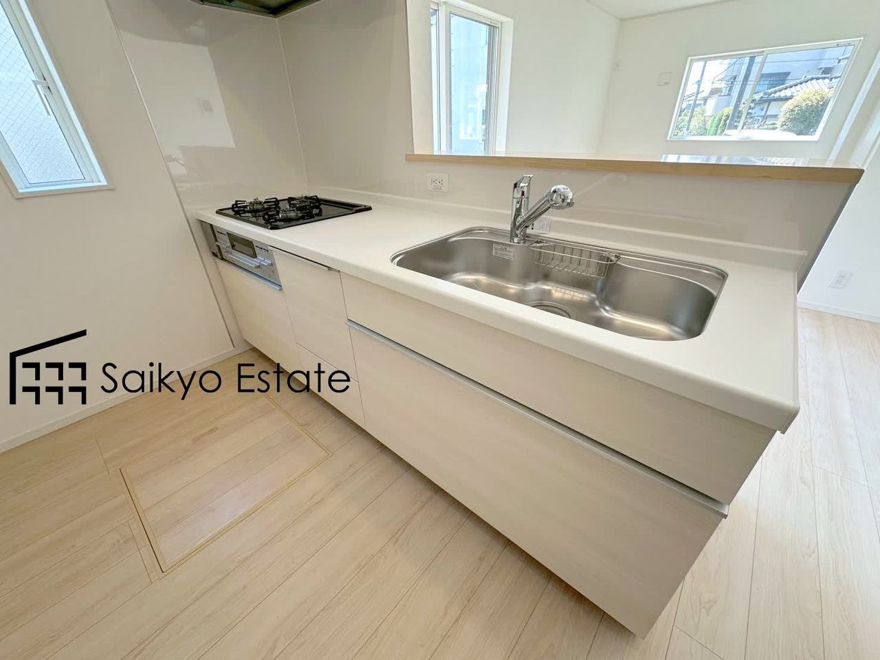 リビングにいる家族とコミュニケーションをとりながら作業が出来る人気のカウンターキッチン。お子様がリビングにいても目が届くので安心です。