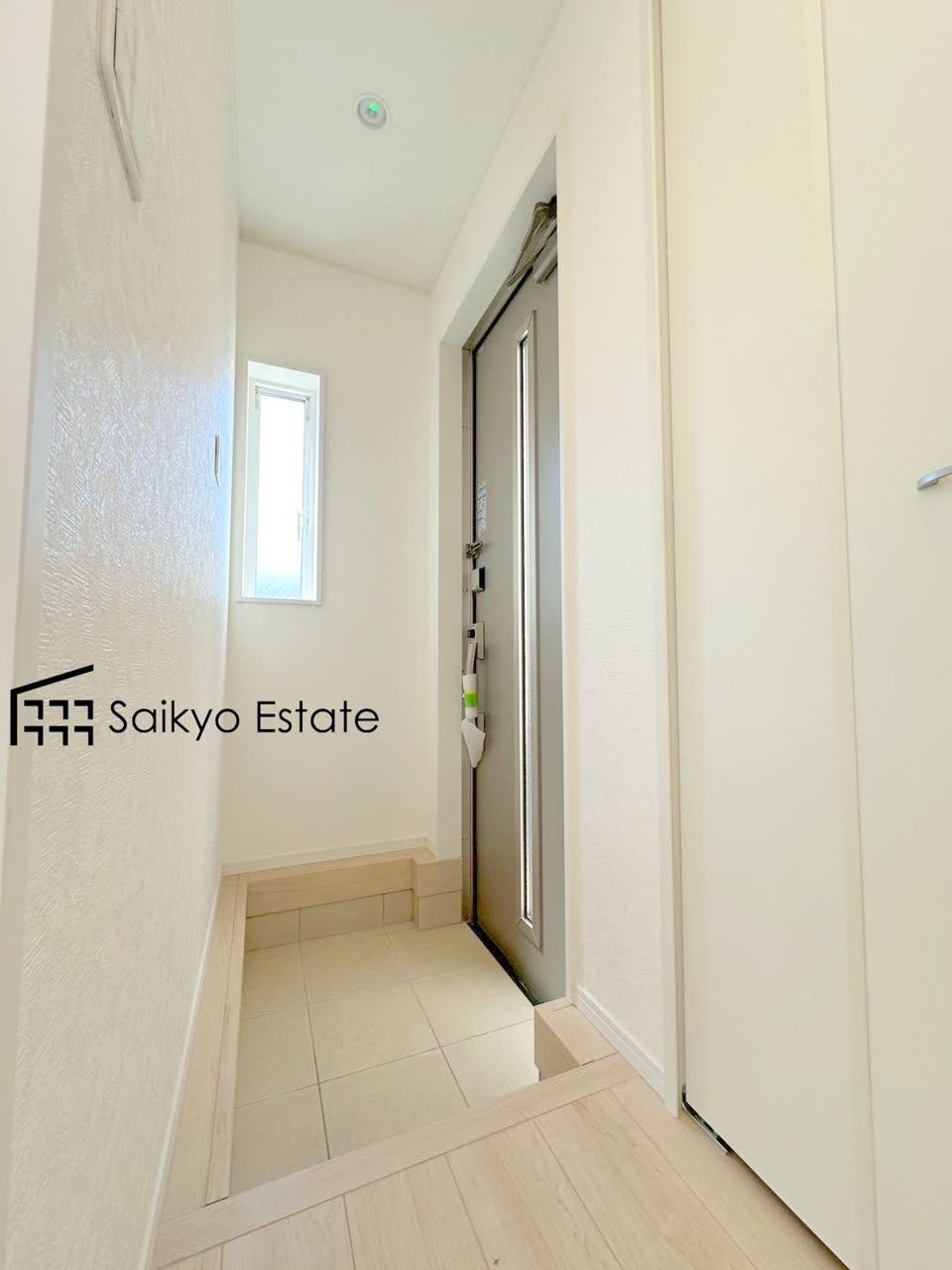 白を基調とした清潔感のある玄関。小窓があって明るく換気ができるのも嬉しいですね。