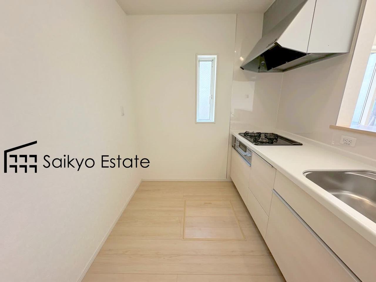 キッチンスペースは冷蔵庫や食器棚などを置くスペースが十分に確保されております。オシャレなカップボードを置きたくなりますね♪
