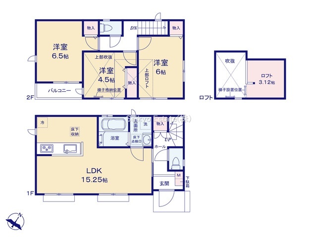 | 間取 | 3LDK+ロフト (LDK15.25帖、洋室6.5帖、洋室6.37帖、洋室4.5帖) | ||