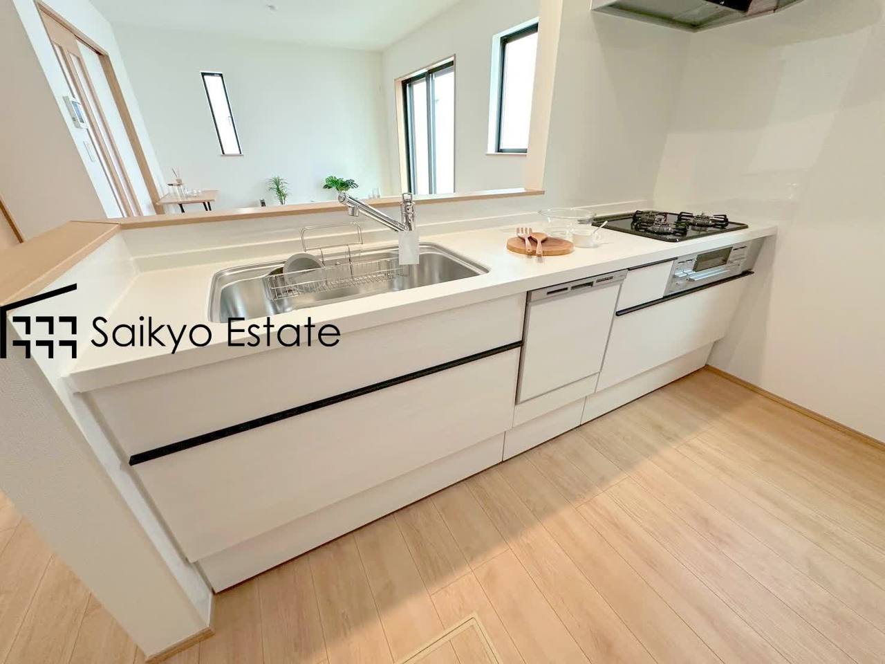 リビングにいる家族とコミュニケーションをとりながら作業が出来る人気のカウンターキッチン。お子様がリビングにいても目が届くので安心です。