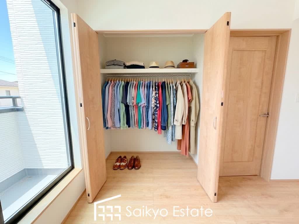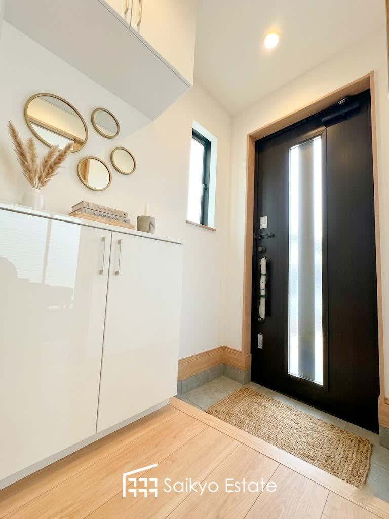 玄関には収納力に優れたシューズボックスがございますので、ご家族みんなの靴が十分入ります!小窓があって明るく換気ができるのも嬉しいですね。