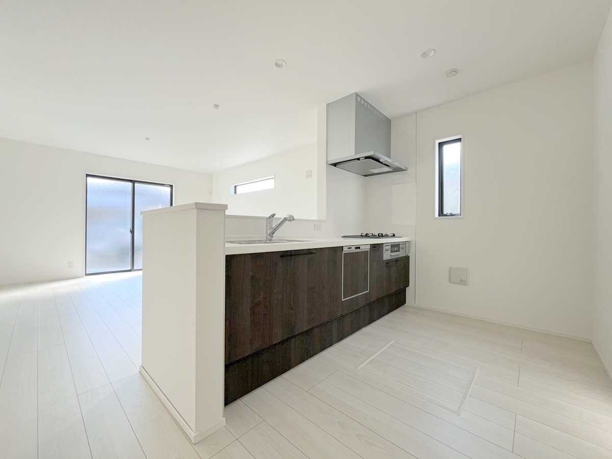 キッチンに立った位置から、リビングにいる家族に目線が届く見守りキッチン! ■八王子市片倉町 新築一戸建て■