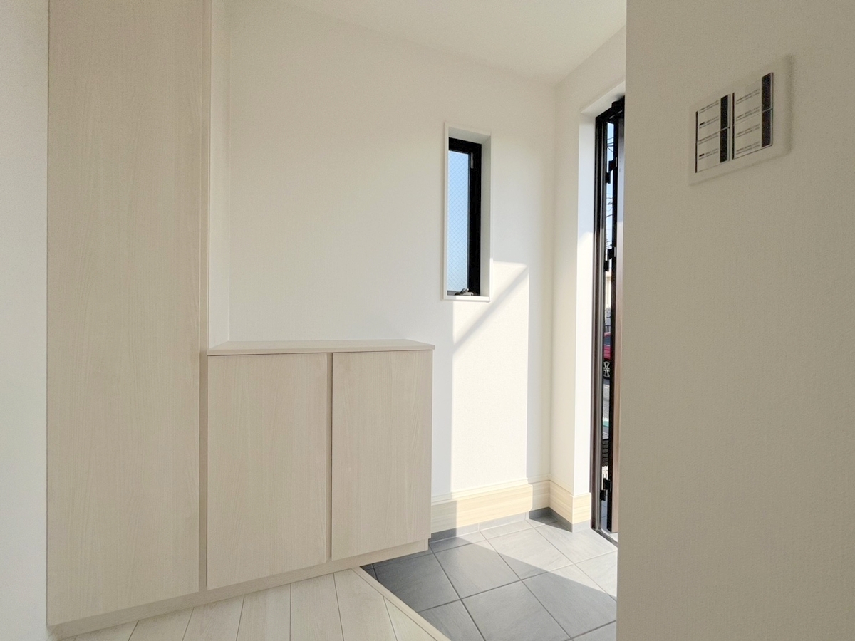 玄関は清潔感のある空間にしたいもの。ご家族が多いご家庭にはとても便利なたっぷり収納できるシューズボックス付きです。 ■八王子市片倉町 新築一戸建て■