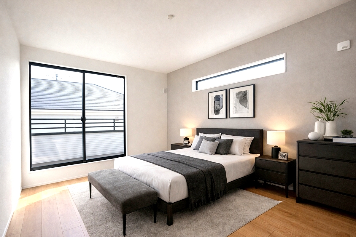 明るく開放感のある洋室。昼間は豊かな陽光が心地よく、夜はゆったりと落ち着いた空間に。※家具はCG加工しております。■八王子市片倉町 新築一戸建て■