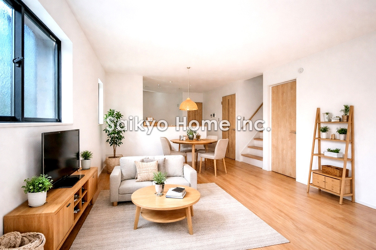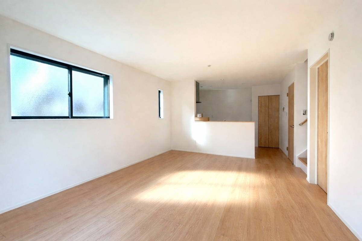 大画面TVも余裕、インテリアプランが考えやすいワイドなリビング。対面キッチンでリビングにいるお子さまにも目が届きます。※家具はCG加工しております。■八王子市片倉町 新築一戸建て■