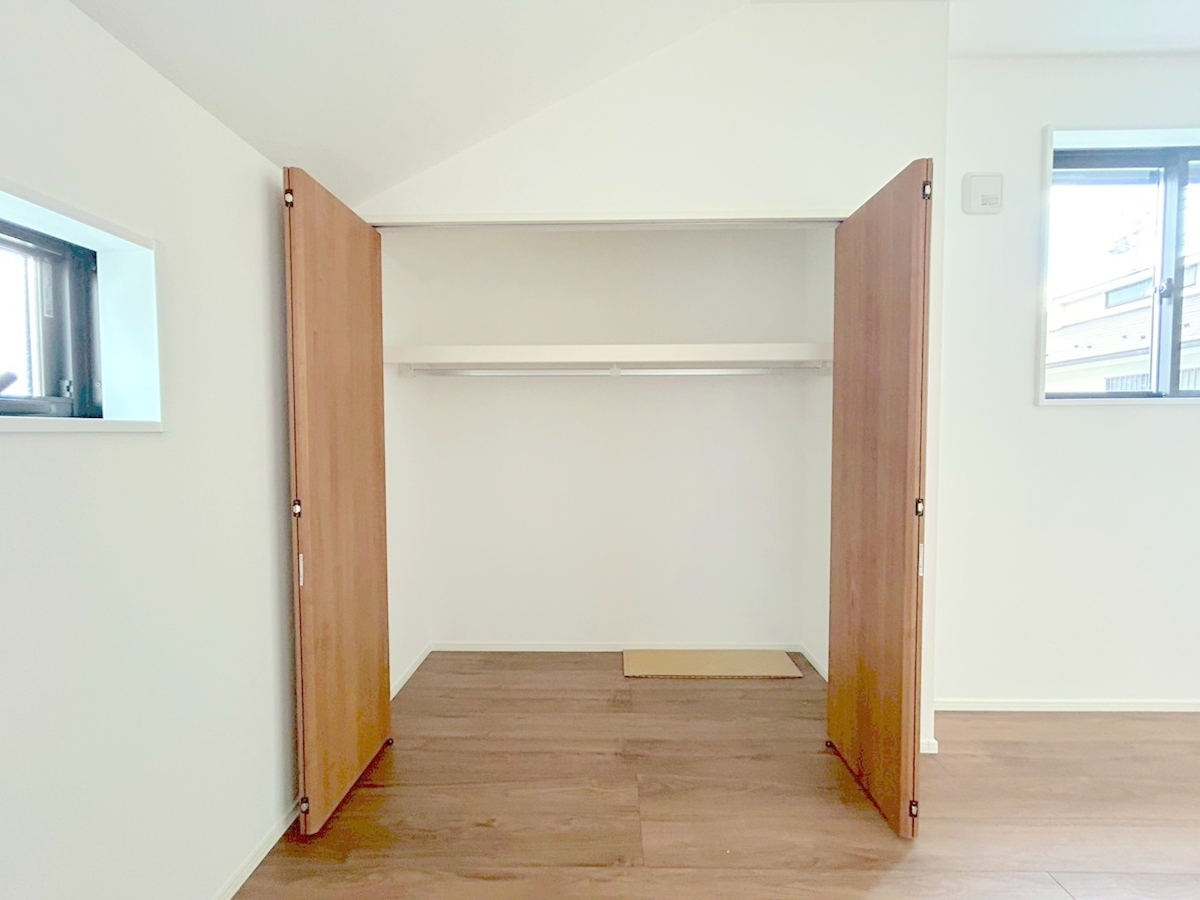 ひと目で収納物を確認できるウォークインクローゼットは、ゆとりの広さを備えた大型収納。数多くの衣類に加え、足元には引出しや衣装箱、シューズボックスなども収納することができます。 ■八王子市片倉町 新築一戸建て■