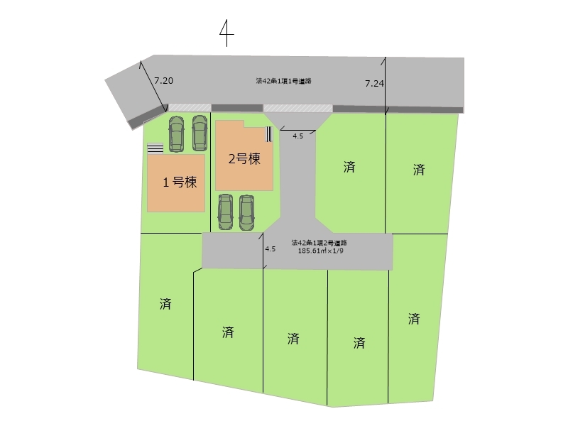 | 権利種類 | 所有権 | 接道 | 北西側7.2M公道に接道 南側4.5M公道に接道 東側4.5M公道に接道 |