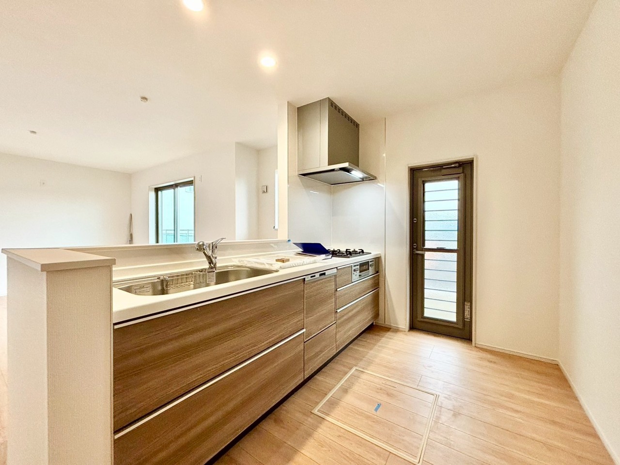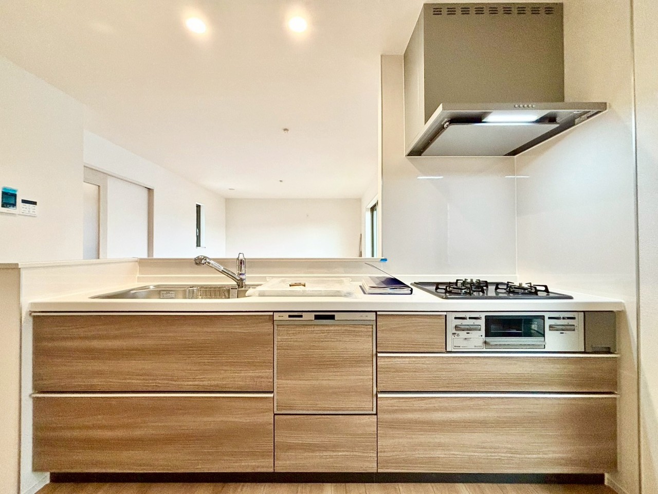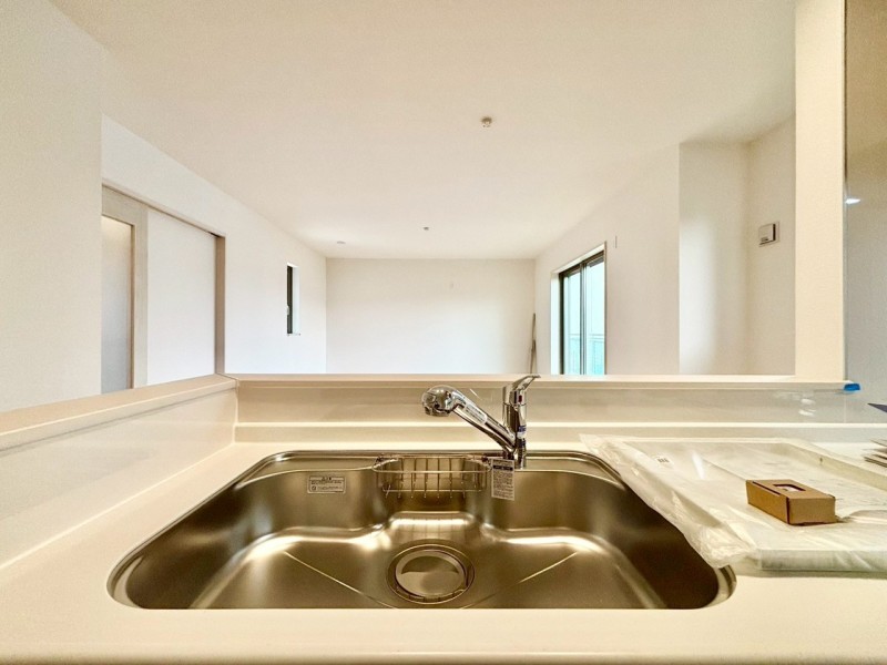 備された対面式カウンターキッチン。リビングが見渡せる設計は、小さなお子様がいるご家庭でも料理をしながら様子が伺える安心設計■小金井市貫井南町1 新築一戸建て■