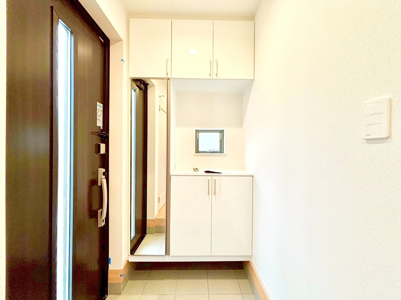 扉をあけてエントランスにはいるとそこにはスペースの確保されたホールがお客様を出迎えてくれます!姿見鏡の設けたシューズクローゼットなども完備。■小金井市貫井南町1 新築一戸建て■