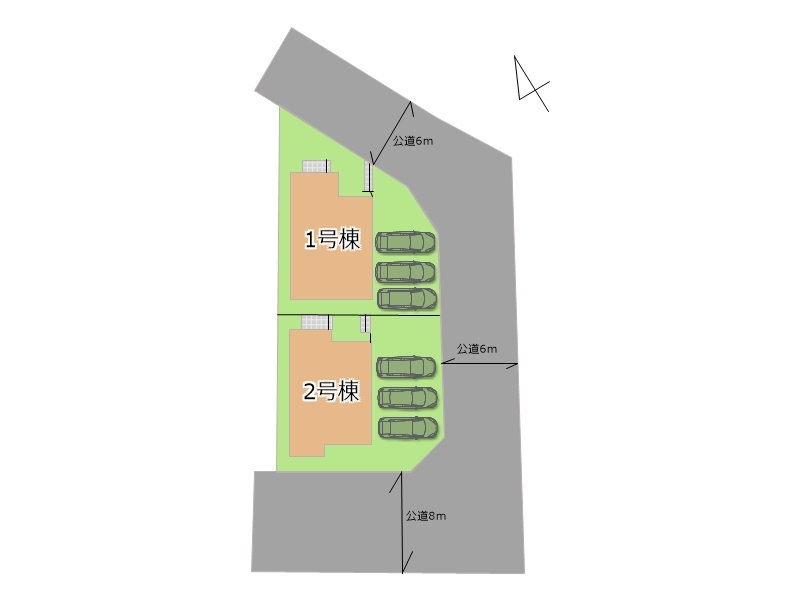 | 権利種類 | 所有権 | 接道 | 北東側6M公道に接道 南東側6M公道に接道 南西側8M公道に接道 |