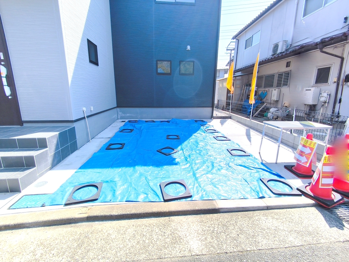 カースペースはコンクリート仕上げ。雨の日も足元は気になりません!■昭島市東町5 新築一戸建て■