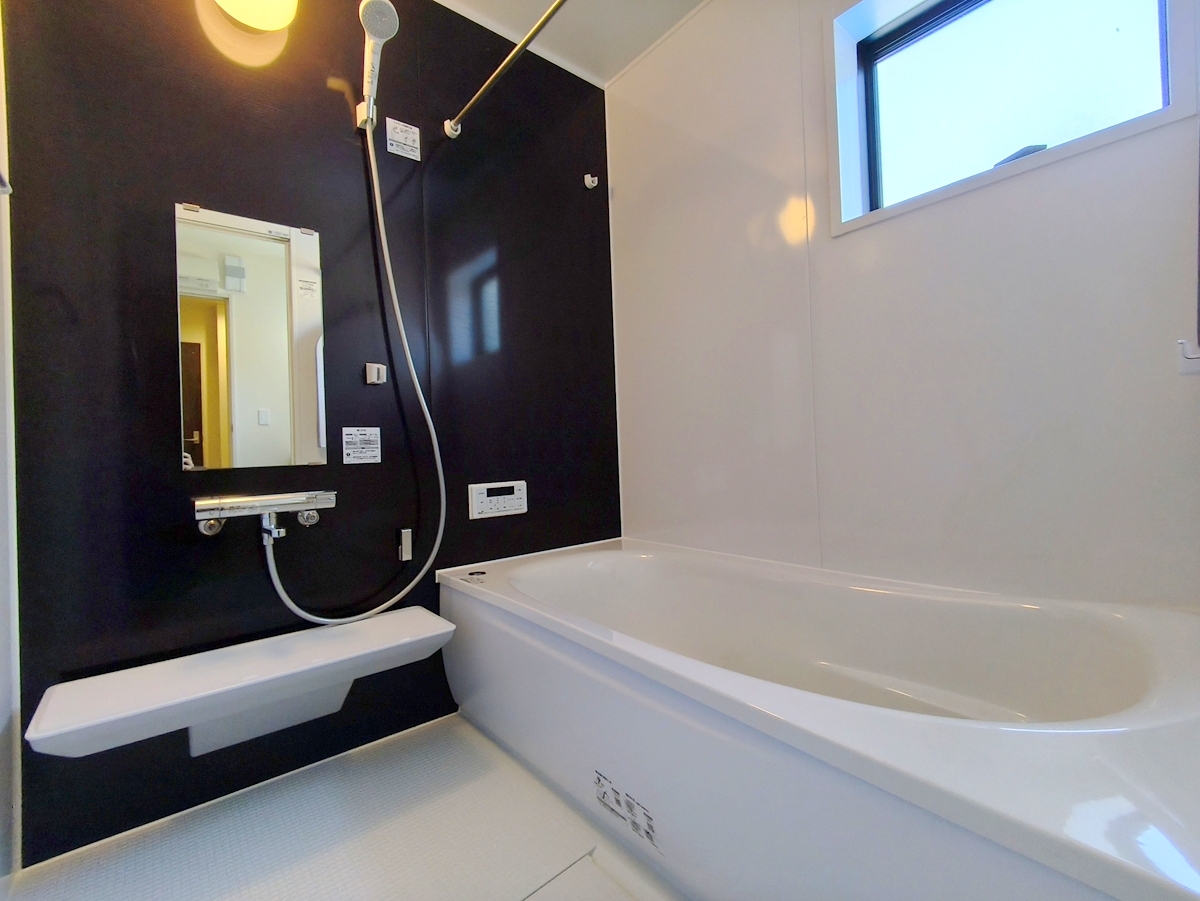 重厚感と清潔感のある浴槽は汚れが落ちやすくお手入れも簡単。浴室はお子さんや年配の方でも安心なバリアフリー仕様。ヒートショックを防止する暖房換気乾燥機も標準仕様。■昭島市東町5 新築一戸建て■