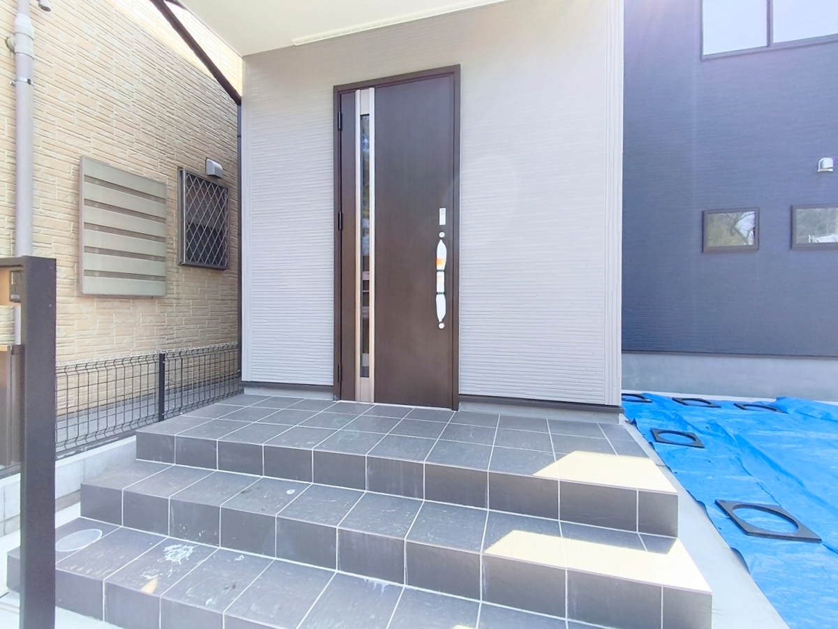 広く開放的な玄関には大きいサイズの靴箱を設置。■昭島市東町5 新築一戸建て■