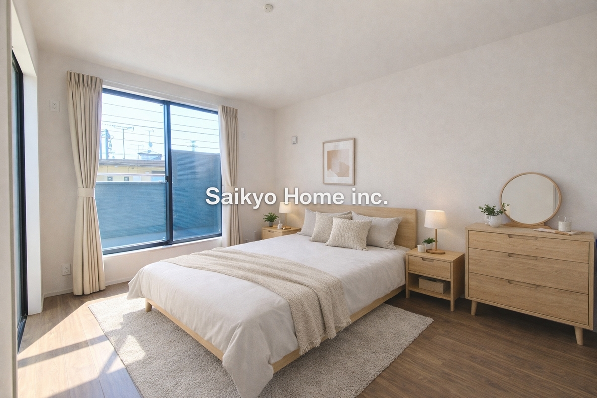 明るく開放感のある洋室。昼間は豊かな陽光が心地よく、夜はゆったりと落ち着いた空間に。 ※家具等はCG加工をしております。■昭島市東町5 新築一戸建て■