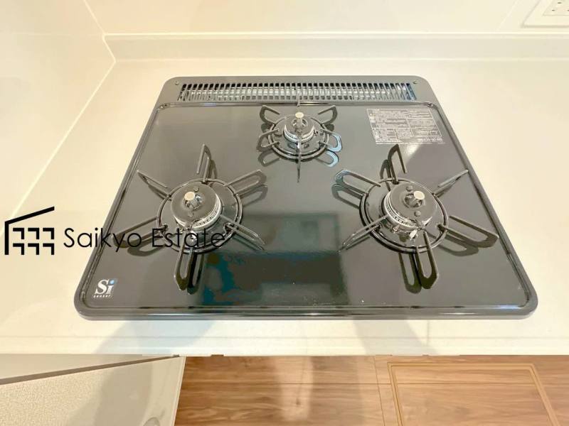 「3口ガスコンロシステム」はたくさんの料理が同時に作れて便利な上、凹凸が少ないフラットトップなのでお掃除も楽々です。