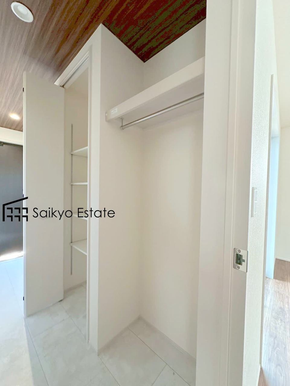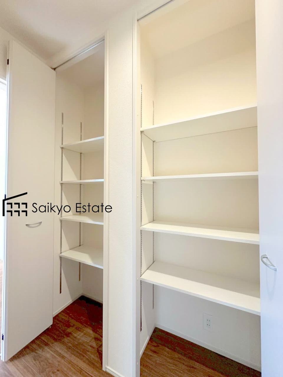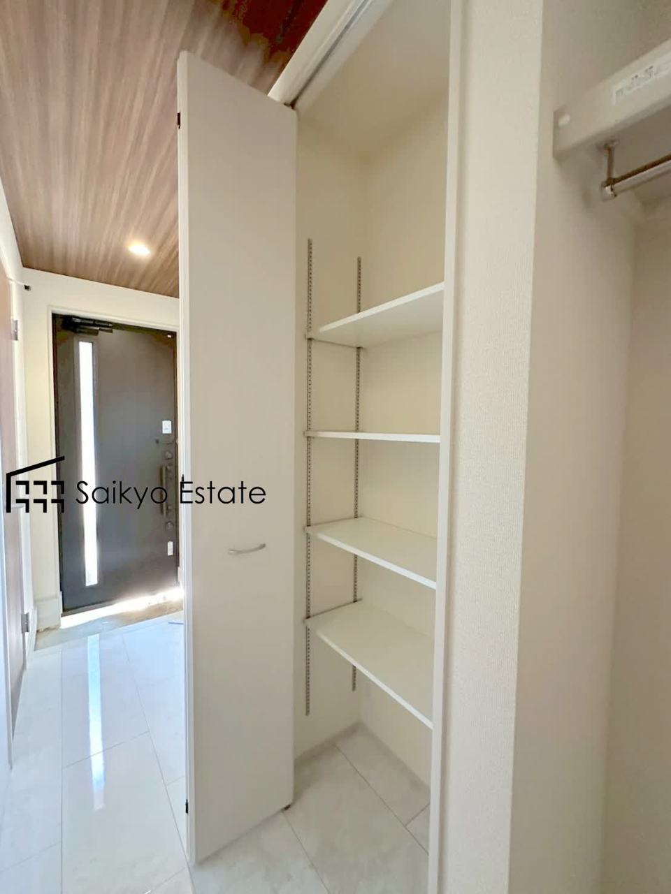 玄関、シューズボックス横にも収納がございます。日用品の収納や備蓄庫としても使える嬉しい空間です。