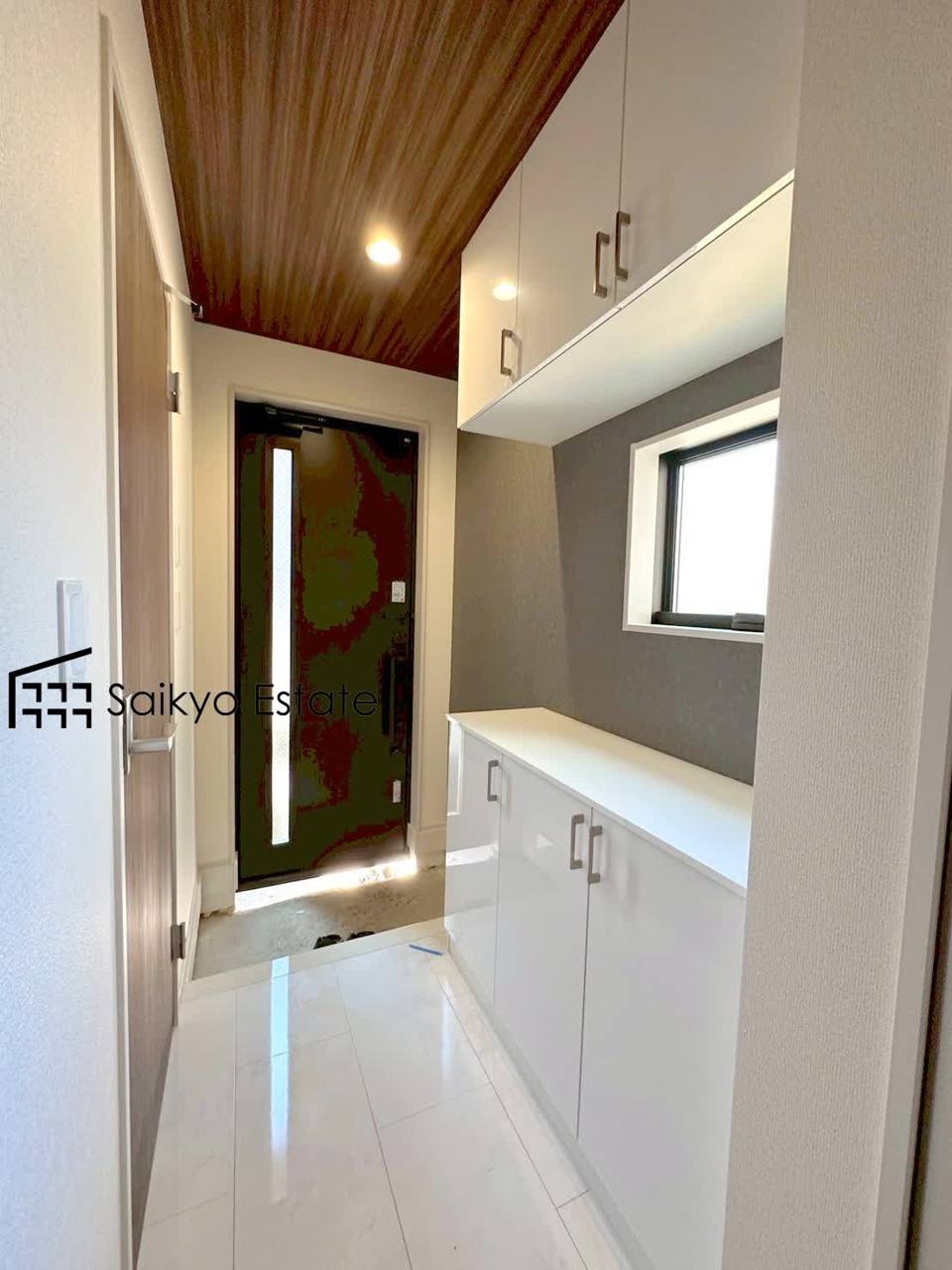 玄関には収納力に優れたシューズボックスがございますので、ご家族みんなの靴が十分入ります!小窓があって明るく換気ができるのも嬉しいですね。