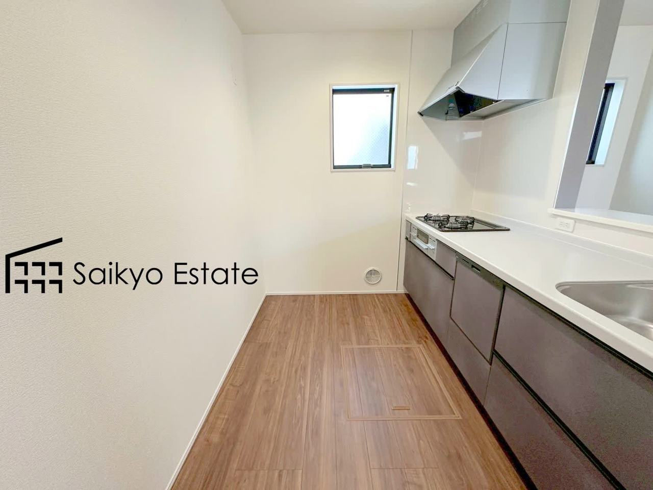 キッチンスペースは冷蔵庫や食器棚などを置くスペースが十分に確保されております。オシャレなカップボードを置きたくなりますね♪