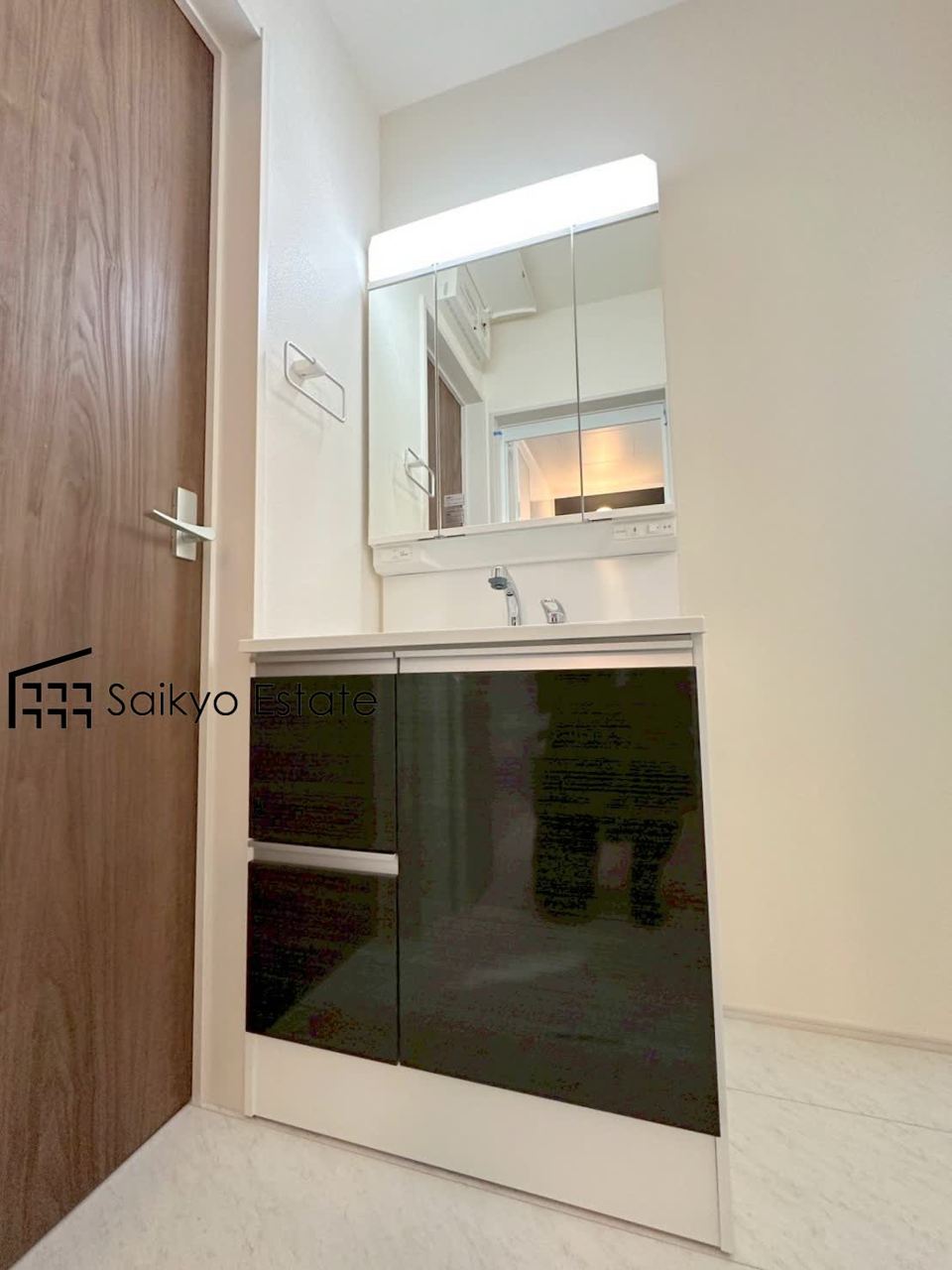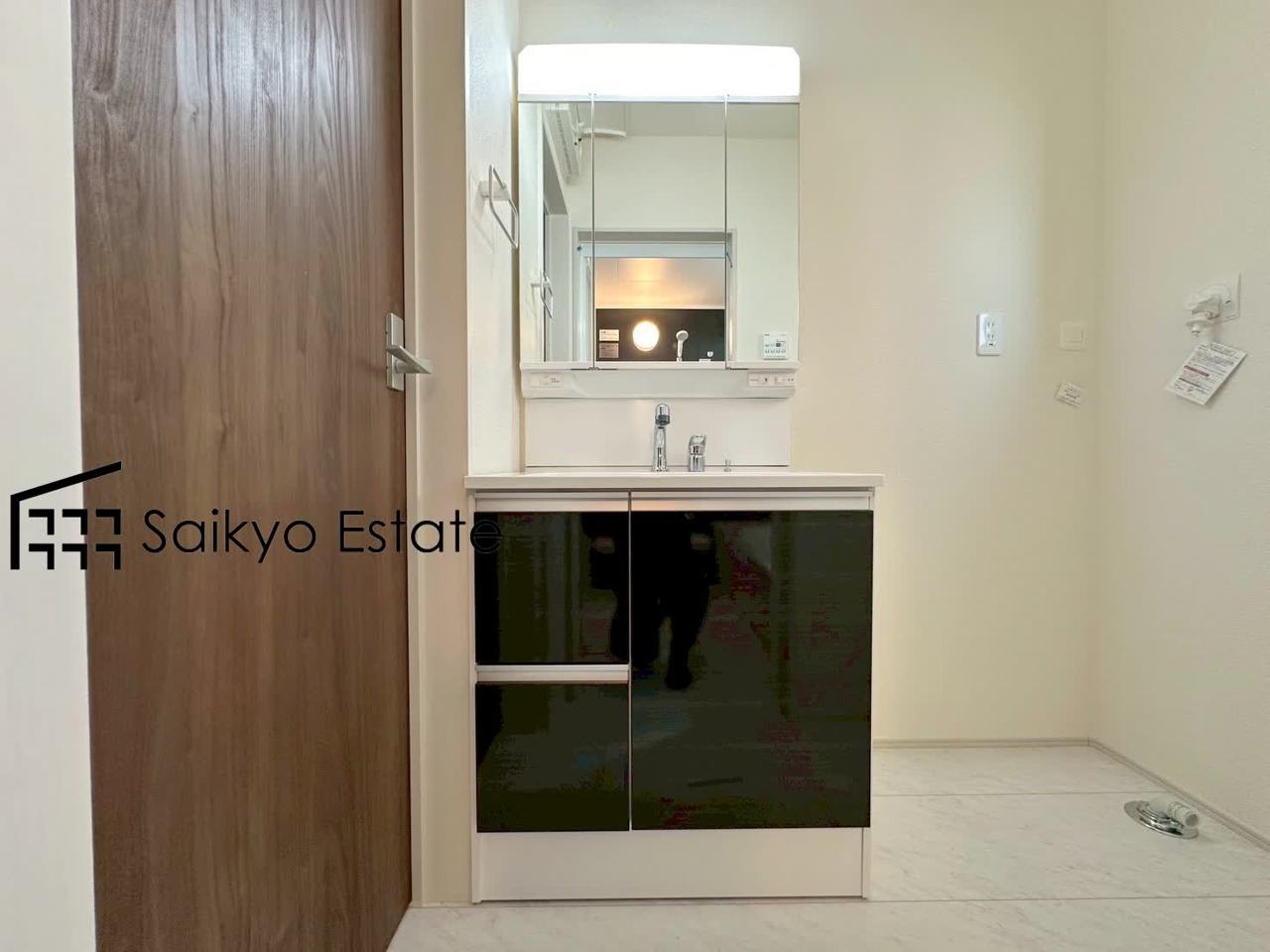 三面鏡付きの洗面化粧台を完備。収納スペースも十分ございますので、ドライヤーなどすっきりと片付きます♪