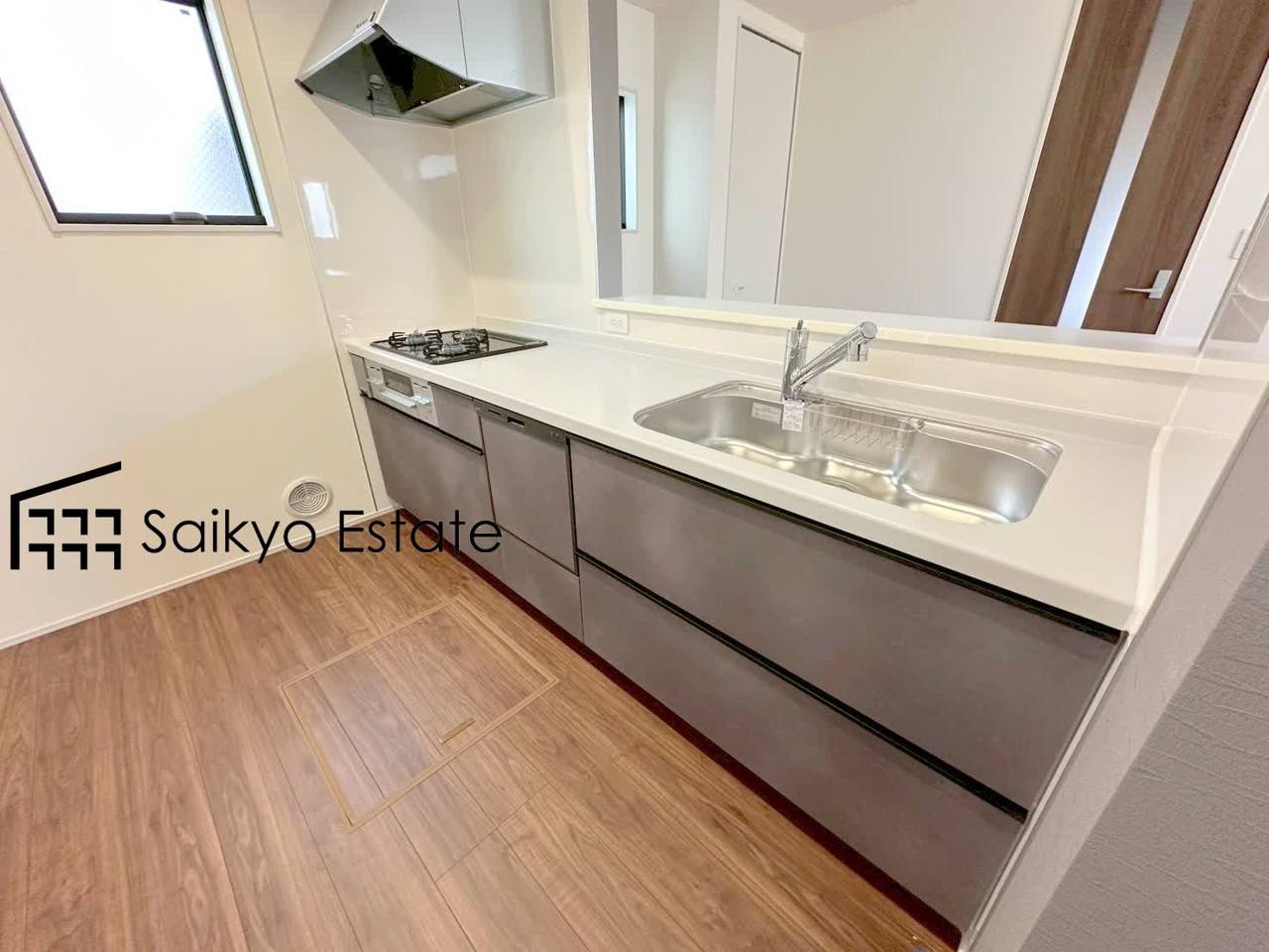 リビングにいる家族とコミュニケーションをとりながら作業が出来る人気のカウンターキッチン。お子様がリビングにいても目が届くので安心です。