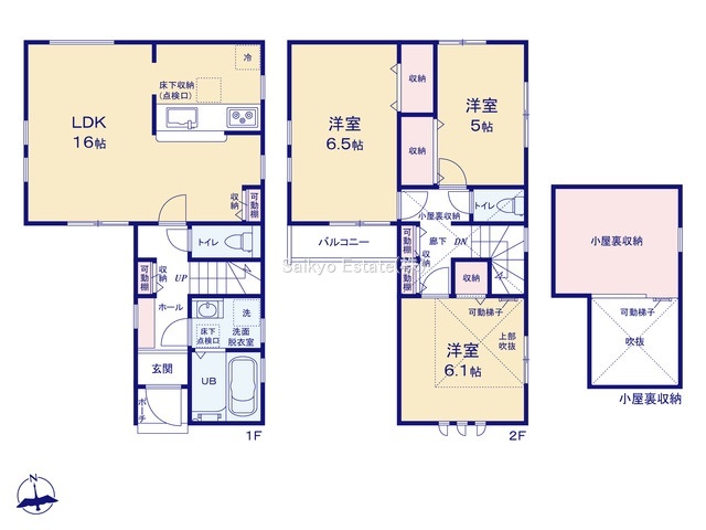 | 間取 | 3LDK (LDK16.0帖、洋室6.5帖、洋室6.1帖、洋室5.0帖) | ||