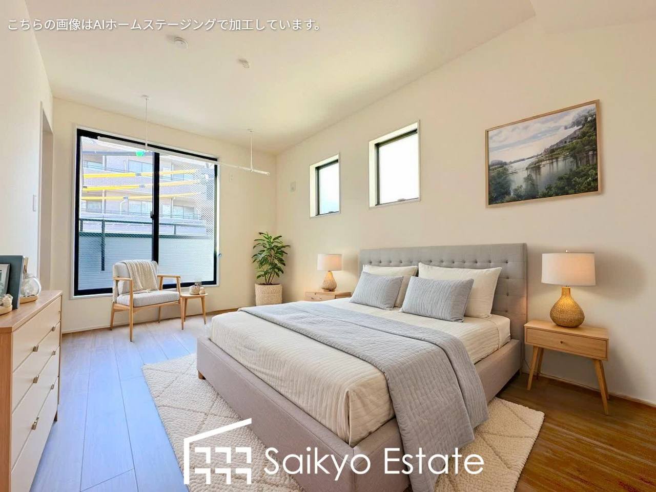 バルコニーに出入りの出来る洋室は、たくさん陽光が差し込む明るい空間です。朝も気持ちよく起きられそうです♪