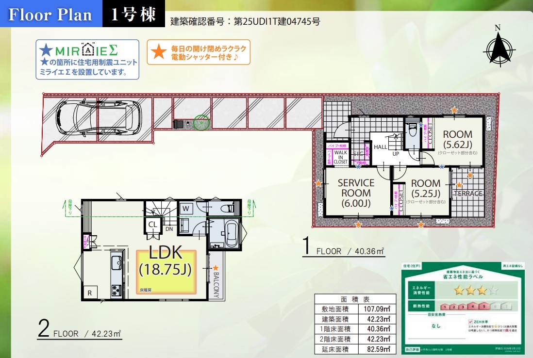 | 建築確認番号 | 第25UDI1T建04045号、他 | 駐車スペース | あり(カースペース) 料金:無料 |