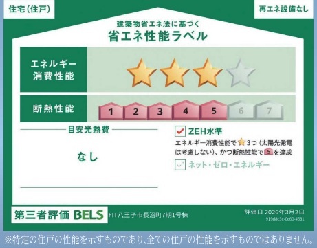 | 省エネ性能表示 | エネルギー消費性能:★★★ 断熱性能:5段階 |