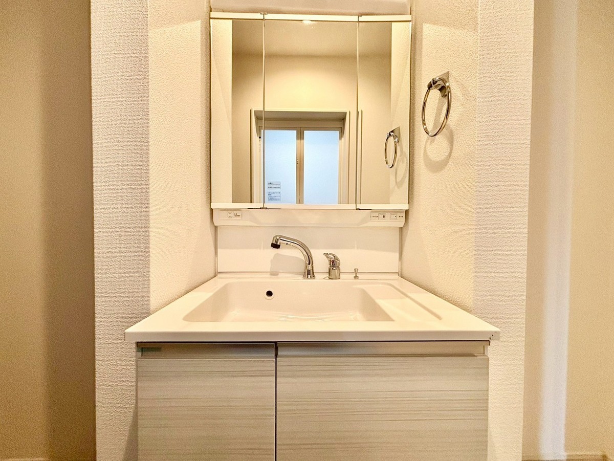 清潔なパウダールームは身だしなみチェックや肌のお手入れに最適です。収納もあり、スッキリと見映えの良い空間に拵えました。時間に余裕とゆとりを持たせます。 ■府中市新町2 新築一戸建て■