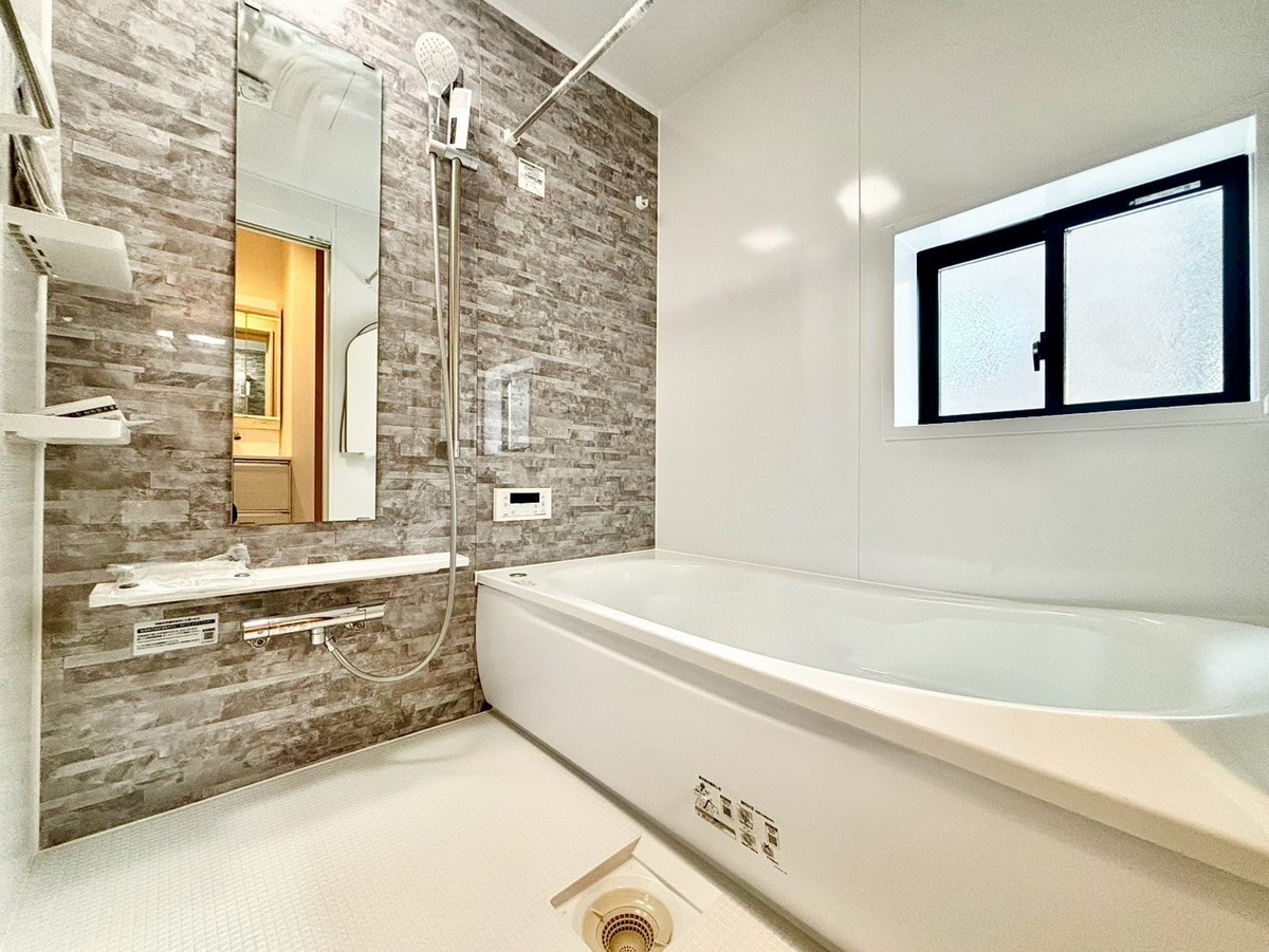 一日の疲れを癒しながら、お子様と一緒にバスタイムも楽しめる清潔感あふれる浴室です。浴室は換気・乾燥・暖房機能付きなので、雨の日のお洗濯や寒い冬でも1年中快適です。 ■府中市新町2 新築一戸建て■