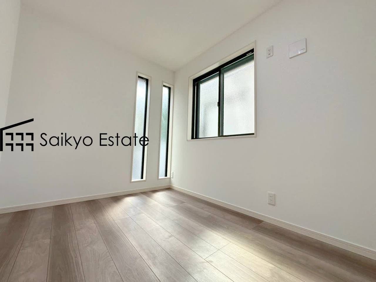 白を基調とした洋室は清潔感があり、落ち着いた空間です。木の温もりが優しいフローリングで、北欧風インテリアが似合いそうな空間です。