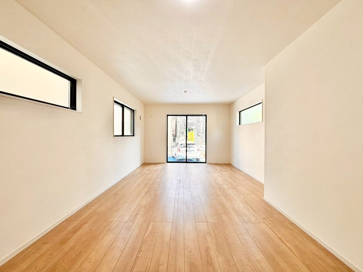 18帖超の広々LDK。南に面した窓からは暖かな陽光がたっぷり差し込みます。また通気性にも優れた設計です。 ■府中市浅間町4丁目 新築戸建て■