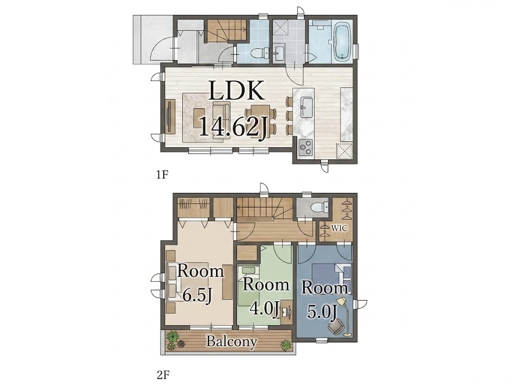 - ※完成予想図はいずれも外構、植栽、外観等実際のものとは多少異なることがあります。
