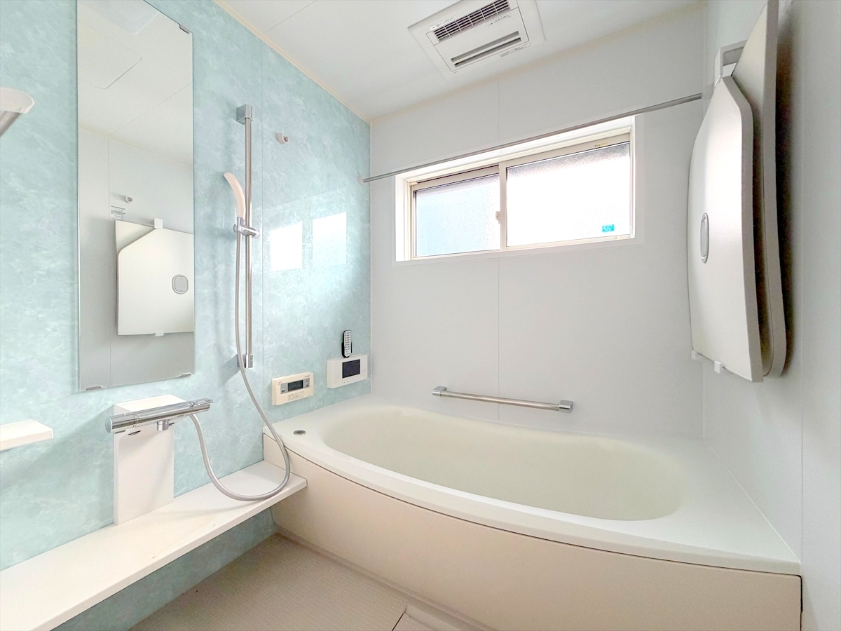 一日の疲れを癒すための心地よいバスタイムを演出する浴室はゆとりあるサイズを採用。保温機能付き!■日野市石田1 中古戸建■