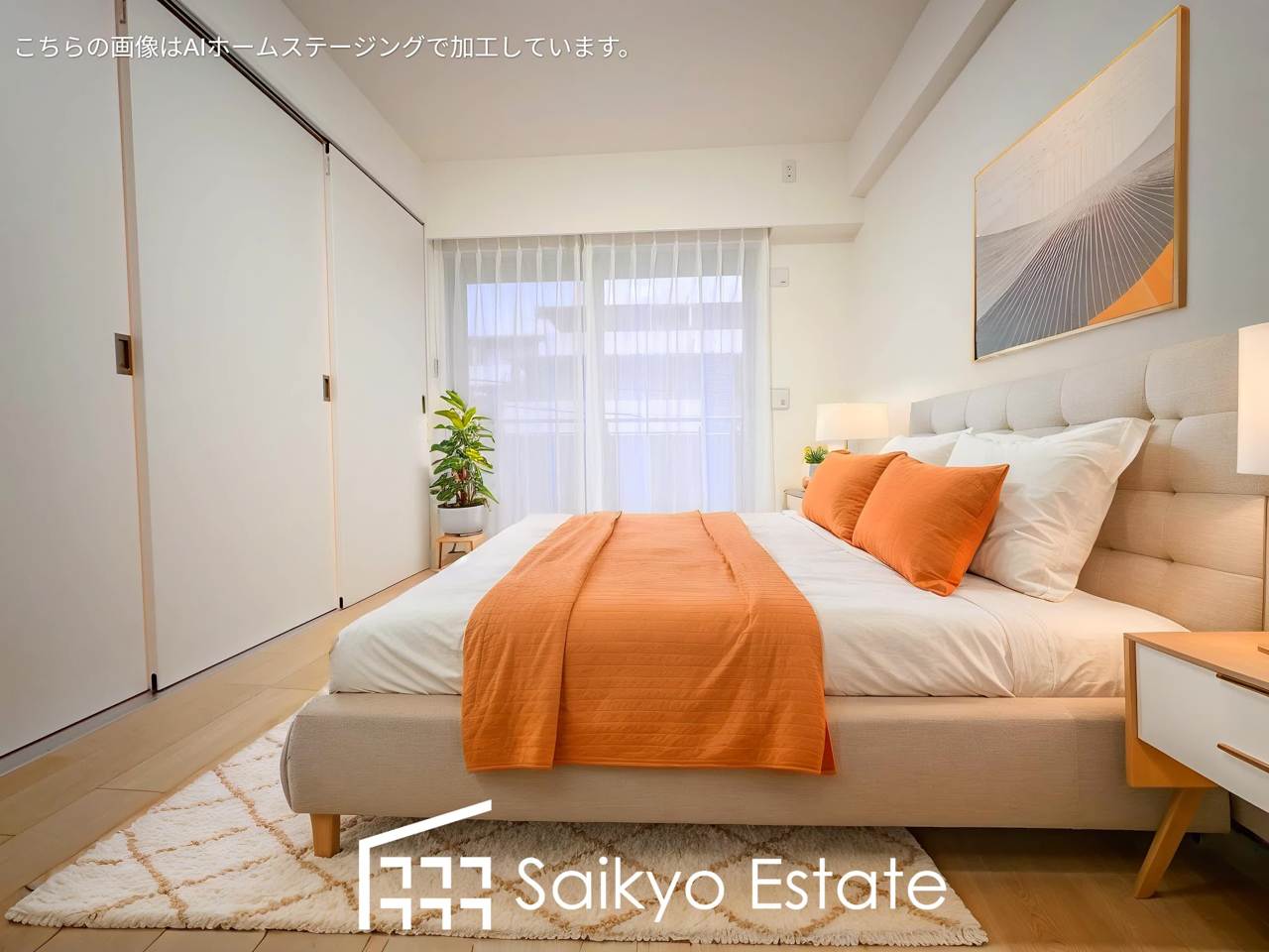 バルコニーに出入りの出来る洋室は、たくさん陽光が差し込む明るい空間です。朝も気持ちよく起きられそうです♪