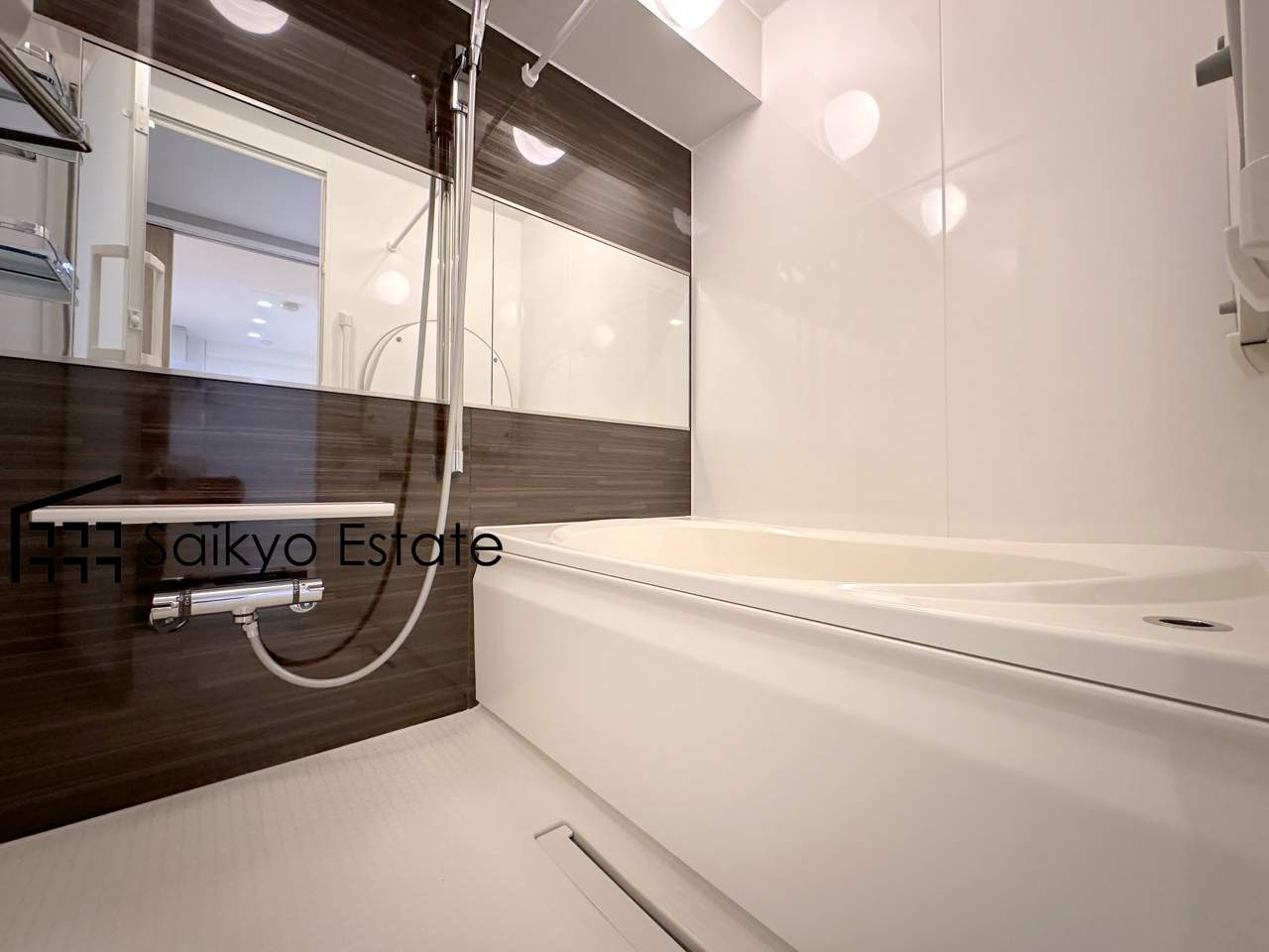 一日の疲れを癒してくれる落ち着いた色合いのバスルーム♪雨の日のお洗濯も安心な浴室乾燥機付きです。