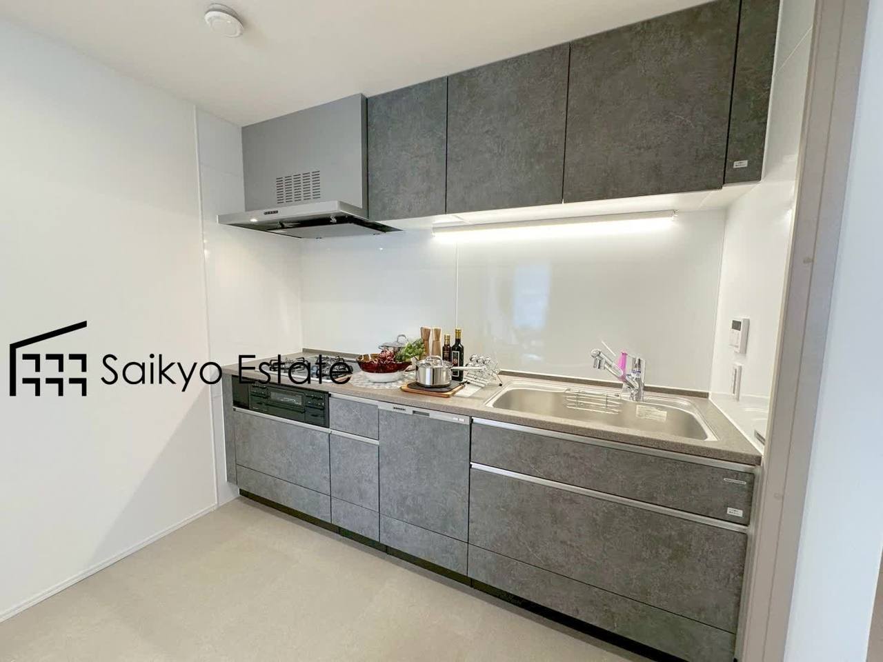 直線的な動線で作業がしやすい壁付けキッチンを採用。空間を広々と活用いただけます。食洗機も付いておりますので、家事の負担を軽減してくれます!