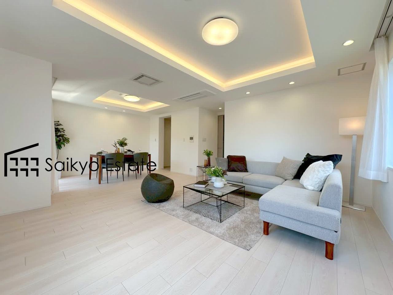 開放的な空間と、陽当たりが魅力のLDK。家族の時間をゆったりと過ごせるプランニングになっています。南側から光が取れる陽だまり空間!明るいリビングは家族の笑顔の源です。