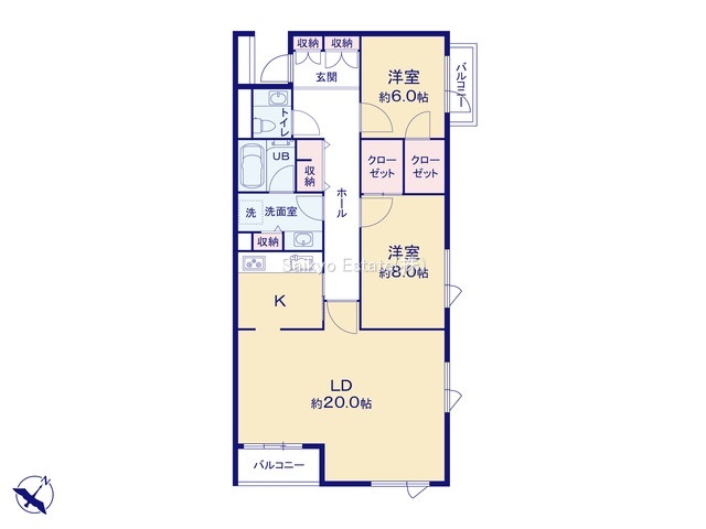 | 間取 | 2LDK (LD20帖、洋室8.0帖、洋室6.0帖) | ||