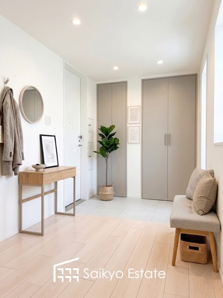 お家に出会う人々を出迎える玄関先だからこそ、広々清潔感あふれる空間にしたいもの。毎日明るい空間をキープします。 ※家具小物類はCG加工しています。