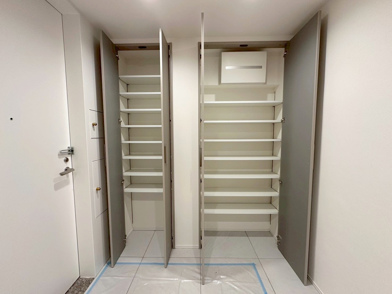 ホール部分に大容量の収納スペースがございます。日用品や使用頻度の低い物などの収納として使える便利な空間です。
