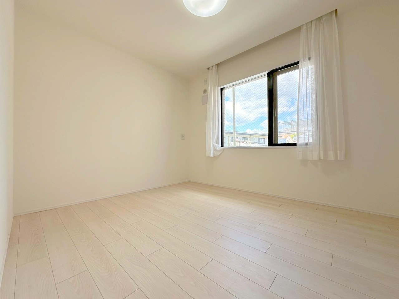 白を基調とした洋室は清潔感があり、落ち着いた空間です。木の温もりが優しいフローリングで、北欧風インテリアが似合いそうな空間です。