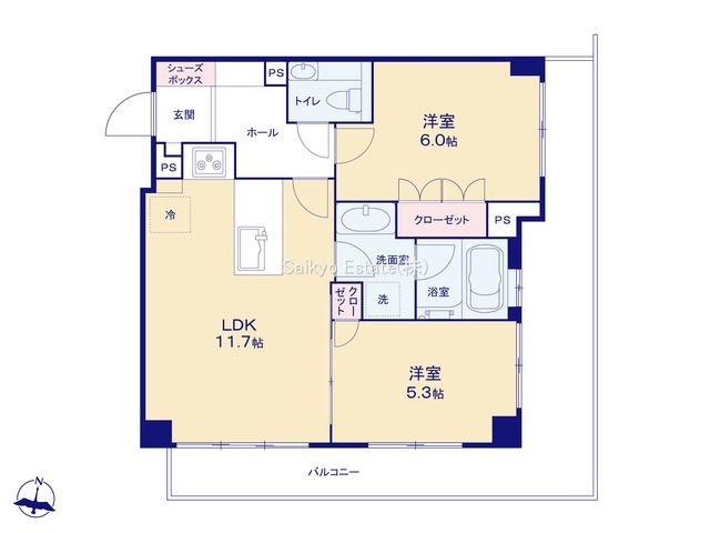 | 間取 | 2LDK (LDK11.7帖、洋室6.0帖、洋室5.3帖) | ||