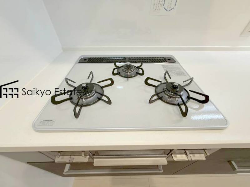 「3口ガスコンロシステム」はたくさんの料理が同時に作れて便利な上、凹凸が少ないフラットトップなのでお掃除も楽々です。